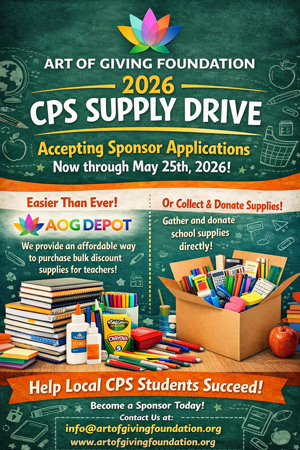 Every year, Chicago Public School teachers dig into their own pockets to provide essential classroom supplies for their students. In underserved communities, where resources are stretched thin, this burden is even heavier. That’s where Art of Giving Foundation steps in.